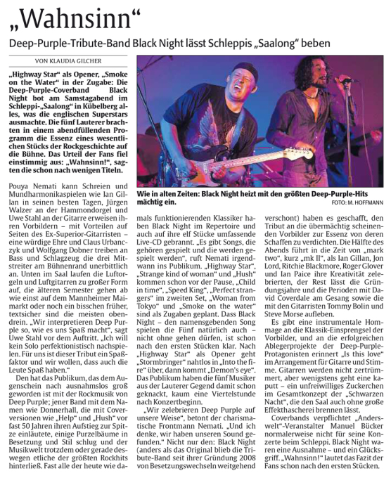 Nachbericht der Rheinpfalz vom letzten Black Night Konzert im Gasthaus Schleppi