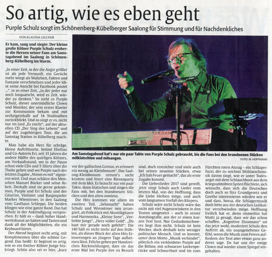 Purple Schulz ist Mensch, Musiker und Geschichtenerzähler